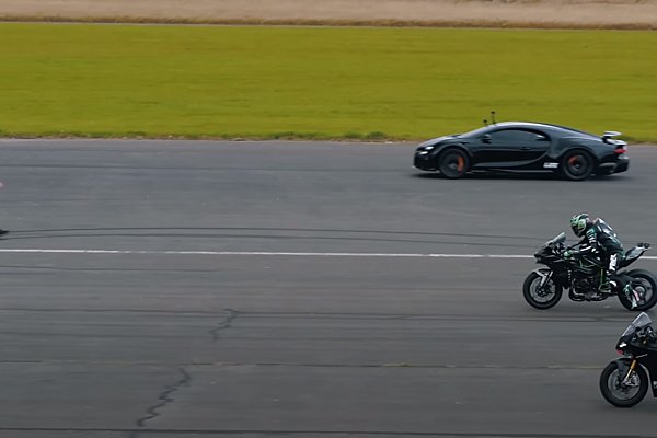 Δύο θηρία στους δύο τροχούς, η Kawasaki Ninja και η Ducati Panigale, μάχονται στα 400 μέτρα με την πανίσχυρη Bugatti Chiron SS.