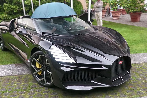 Ο οδηγός της σπάνιας και πανάκριβης Bugatti Mistral χρειάστηκε να ανοίξει την ομπρέλα του όταν άρχισαν να πέφτουν οι πρώτες σταγόνες από τον ουρανό.