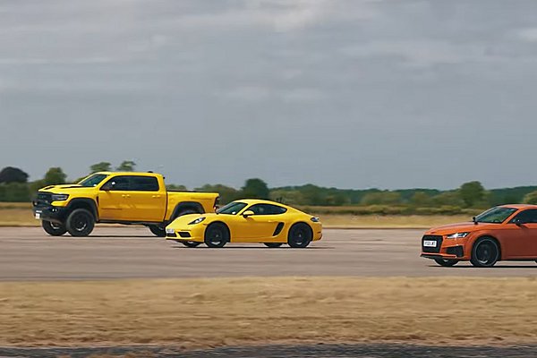 Τι θέλει το γιγαντιαίο Hennessey TRX Mammoth στο drag strip με τα Audi TTS και Porsche Cayman; Η απάντηση στο βίντεο.