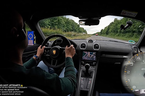 Τα ηχεία στο τέρμα: Η Porsche Cayman GT4 RS των 500 PS κατάφερε να αγγίξει τα 120 dB, κάνοντας τα 'μαγικά' της στην Autobahn.