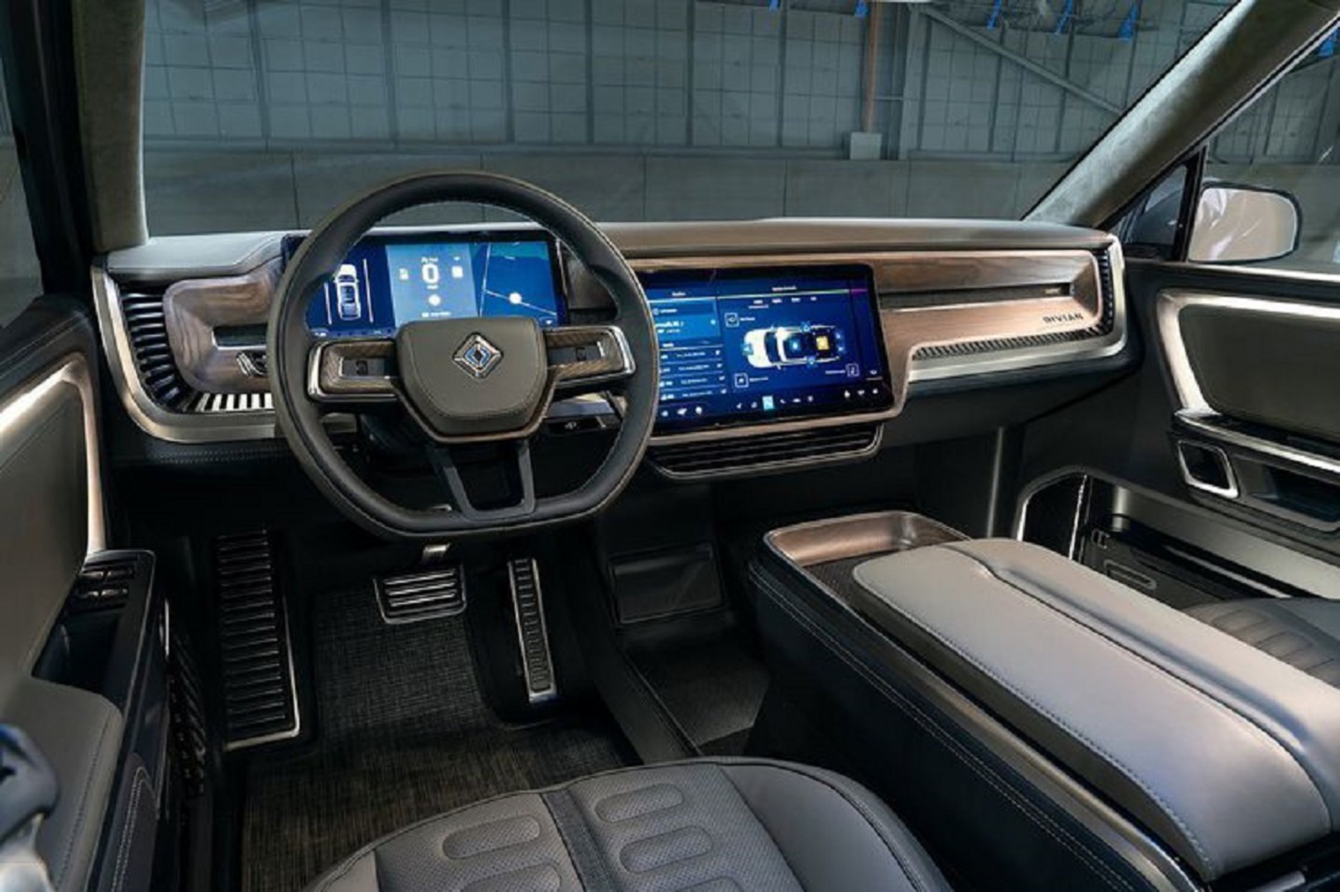 Το εσωτερικό θα διαθέτει standard μεγάλη γυάλινη οροφή και δύο μεγάλες οθόνες αφής. Η μία χρησιμεύει ως set χειρισμού οργάνων, η άλλη ως κέντρο ελέγχου του infotainment. Μέσω μιας τρίτης οθόνης αφής μπορούν να διαμορφώσουν διάφορες ρυθμίσεις οι επιβάτες της πίσω σειράς θέσεων. Ακόμα και πέρα από το όριο της ασφάλτου, το Rivian R1T θα μπορεί να οδηγηθεί αυτόνομα (στο επίπεδο 3), με τους αισθητήρες, τις κάμερες και την τεχνολογία Lidar να βρίσκονται ήδη στο αυτοκίνητο.