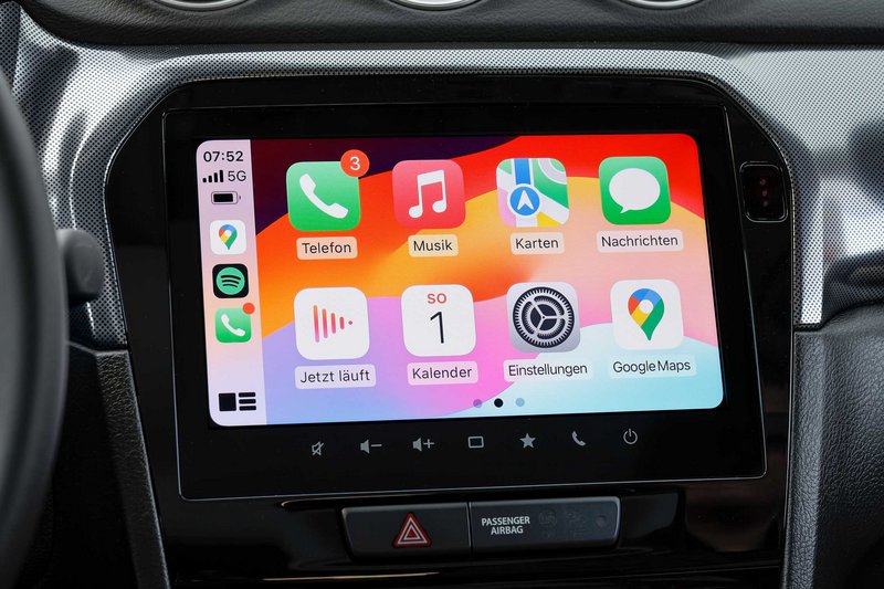 Στο εσωτερικό, η οθόνη πολυμέσων 9 ιντσών υποστηρίζει ασύρματο Apple CarPlay και Android Auto, ενώ το Suzuki Connect επιτρέπει απομακρυσμένη παρακολούθηση του οχήματος μέσω εφαρμογής, με λειτουργίες που διευκολύνουν τη χρήση και τη συντήρηση.