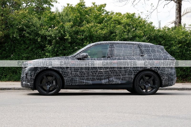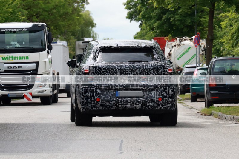 Το καμουφλάζ είναι έντονο και η συνολική εμφάνιση παραπέμπει αρκετά στη νέα iX3 που σάς έχουμε ήδη παρουσιάσει να δοκιμάζεται, αλλά σαφώς με αυξημένες διαστάσεις. Στο εμπρός μέρος μπορούμε να διακρίνουμε, έστω και με δυσκολία, τη σχεδιαστική φιλοσοφία της Vision Neue Klasse X, με τη μικρότερη μάσκα, τον κοντό πρόβολο και τα πιο «αιχμηρά» φωτιστικά σώματα.