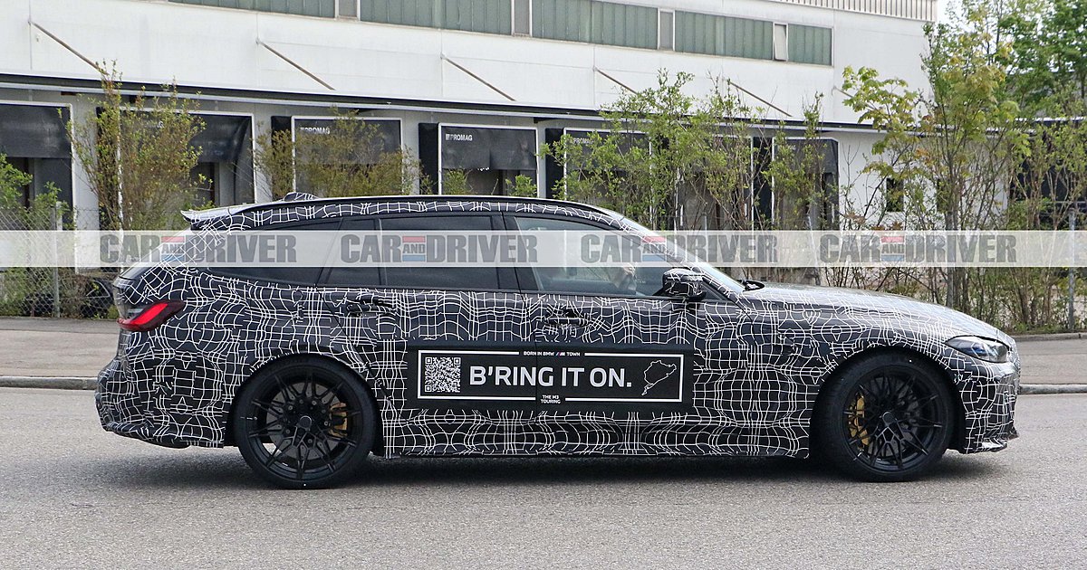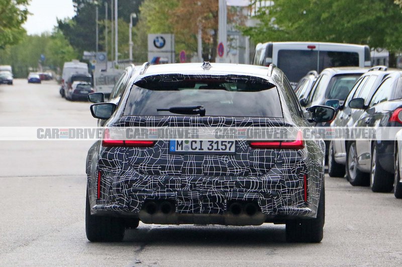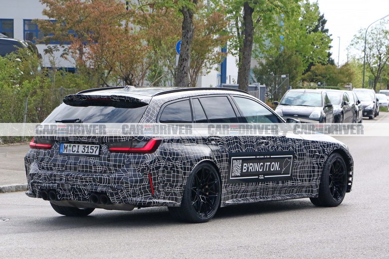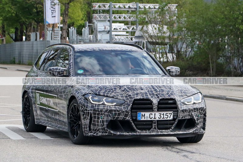 Στις φωτογραφίες μπορούμε να δούμε την M3 Touring με ελαφρύ καμουφλάζ και να διακρίνουμε το γενικότερο στυλ σχεδίασης του αμαξώματός της. Παρά το γεγονός ότι υπάρχει η κάλυψη, καταλαβαίνουμε ότι αυτό είναι «μυώδες», με εκτεταμένους θόλους και ογκώδεις προφυλακτήρες.