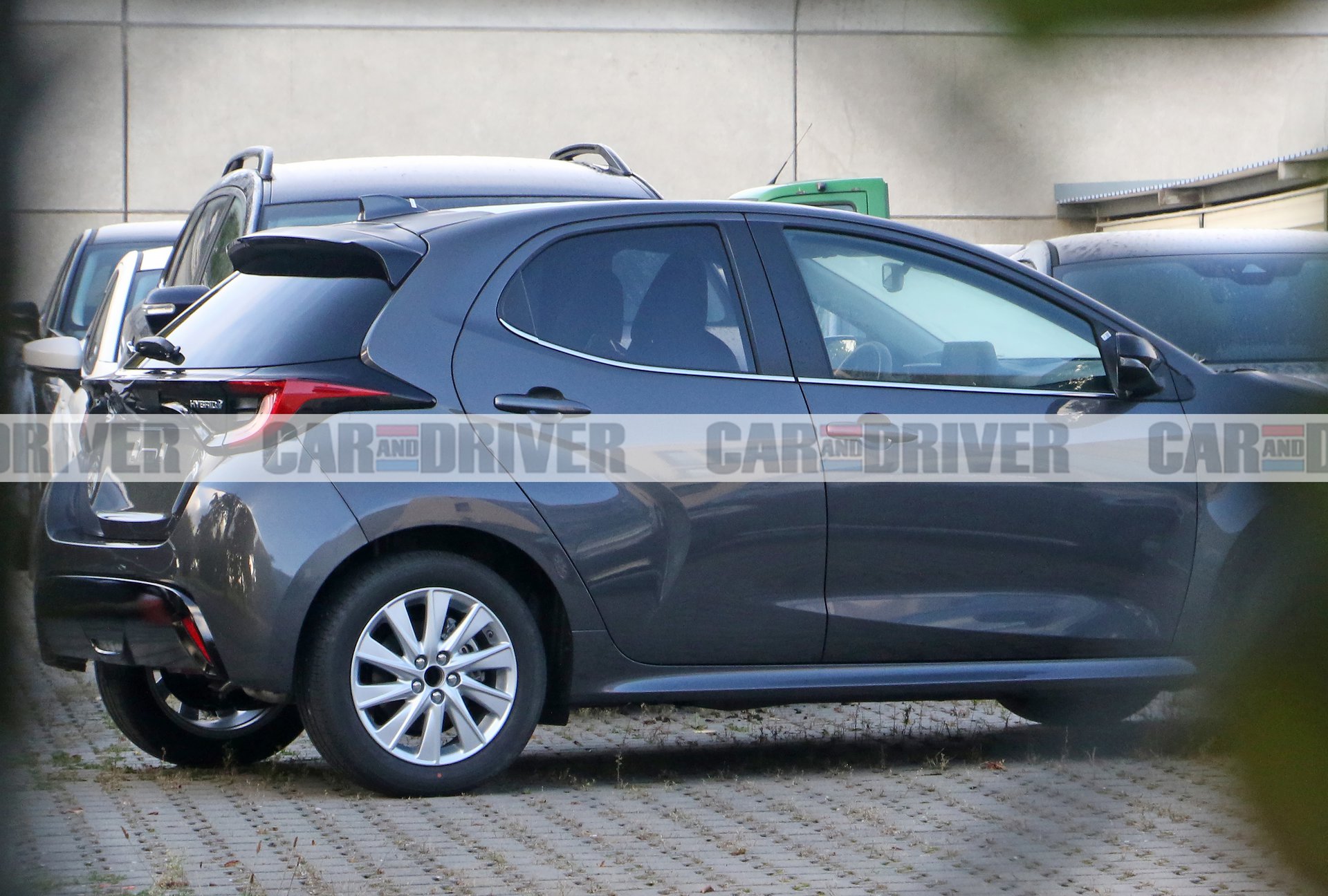 Και ο ευκολότερος τρόπος για να το κάνει αυτό είναι φυσικά να πατήσει πάνω στο Yaris όπως στις φωτογραφίες που βλέπουμε εδώ. Όλα τα σήματα της Toyota αφαιρούνται ή καλύπτονται, αλλά στο πίσω μέρος μπορούμε να δούμε το λογότυπο της Mazda κάτω από τη μαύρη ταινία.