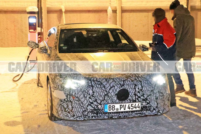Πλέον, σε χιονισμένες περιοχές, δύο πρωτότυπα «συνελήφθησαν» να φορτίζουν τις μπαταρίες τους σε ένα σταθμό φόρτισης. Το ένα εξ’ αυτών, φωτογραφίες του οποίου φιλοξενεί το συγκεκριμένο άρθρο, είχε ελαφρώς μικρότερο καμουφλάζ. Έτσι, έγινε εμφανές ότι στις δύο άκρες του αμαξώματος, τα γραφικά των φωτιστικών σωμάτων διατηρούν το ολοκαίνουριο σχήμα του αστεριού τριών ακτίνων που είχε το Concept car και αναμένεται να «πρωταγωνιστήσουν» από εδώ και στο εξής σε πολλά νέα μοντέλα της Mercedes.
