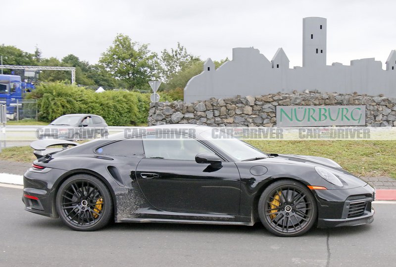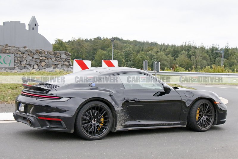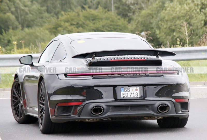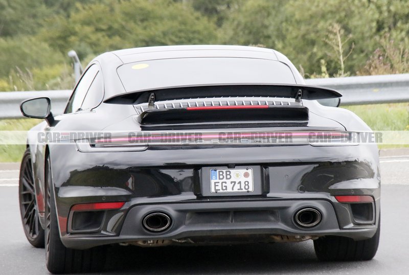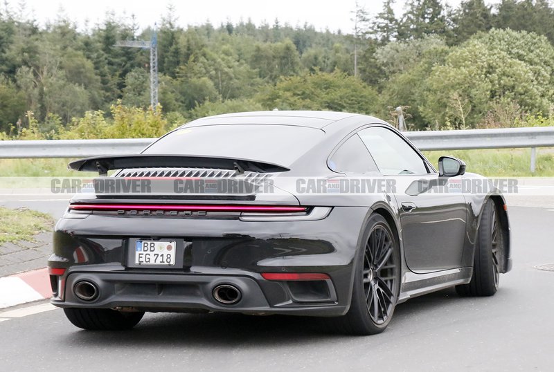 Η επερχόμενη υβριδική 911 θα βασίζεται στην 911 Turbo της τρέχουσας γενιάς 992, με την οποία αυτό το δοκιμαστικό πρωτότυπο μοιράζεται το φαρδύ αμάξωμα, το πίσω φτερό και τις πλαϊνές εισαγωγές αέρα.