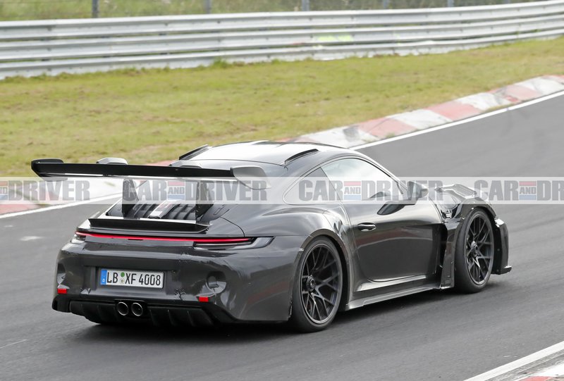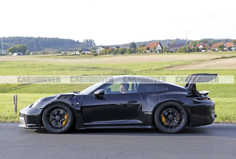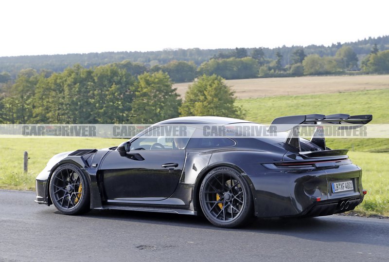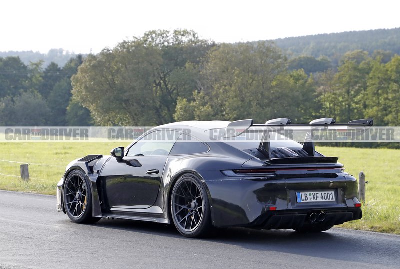 Μπορούμε να δούμε τους αεραγωγούς πάνω από τα μπροστινά φτερά καθώς και αυτό που φαίνεται να μοιάζει με εξαγωγές αέρα στο πίσω μέρος των μπροστινών φτερών προς τις πόρτες. Μαζί με αυτό το τεράστιο φτερό είναι σαφές ότι το νέο GT3 RS θα έχει ένα ακραίο αεροδυναμικό πακέτο για ένα «κανονικό» αυτοκίνητο δρόμου.