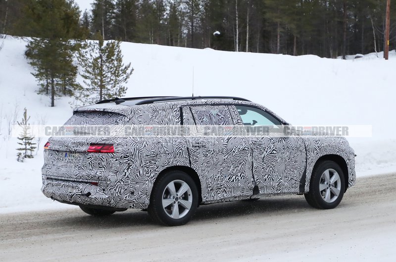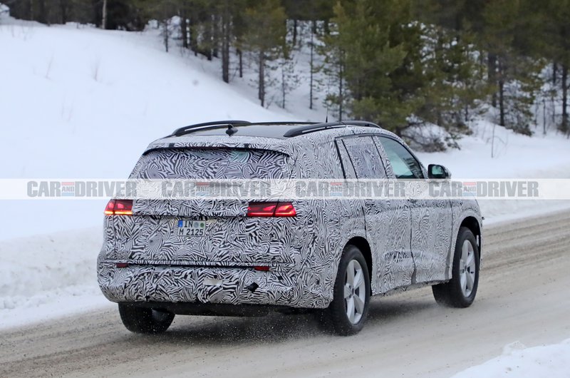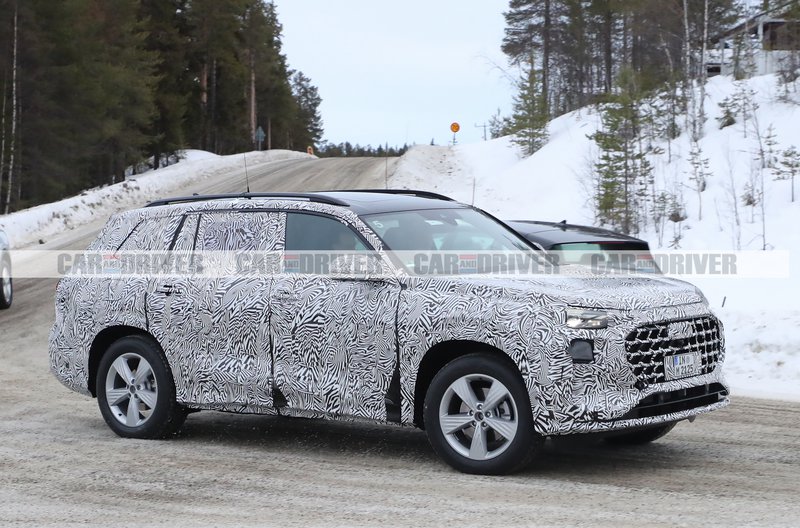 Το ίδιο έκανε και η Audi με το επερχόμενο Q9. Το αμάξωμα παραγωγής του SUV 3 σειρών καθισμάτων κρύβεται κάτω από το καμουφλάζ και βλέπουμε επίσης τα έτοιμα φώτα παραγωγής τοποθετημένα τόσο μπροστά όσο και πίσω.