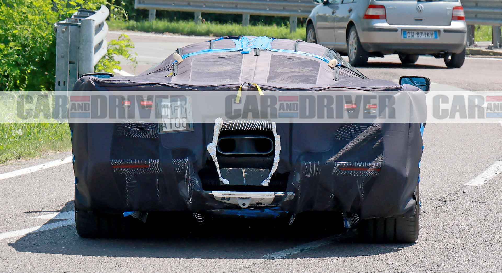 Η αλήθεια είναι ότι το καμουφλάζ θεωρητικά κρύβει τα πάντα για τη σχεδίαση, ωστόσο είναι εμφανή κάποια στοιχεία, όπως για παράδειγμα το πολύ χαμηλό εμπρός τμήμα και η μεγάλη μάσκα με τις δύο πλευρικές εισαγωγές. Επιπλέον, η κεντρική περιοχή του καλύμματος στο καπό με την ύπαρξη φερμουάρ, «προδίδει» την παρουσία εισαγωγών αέρα.