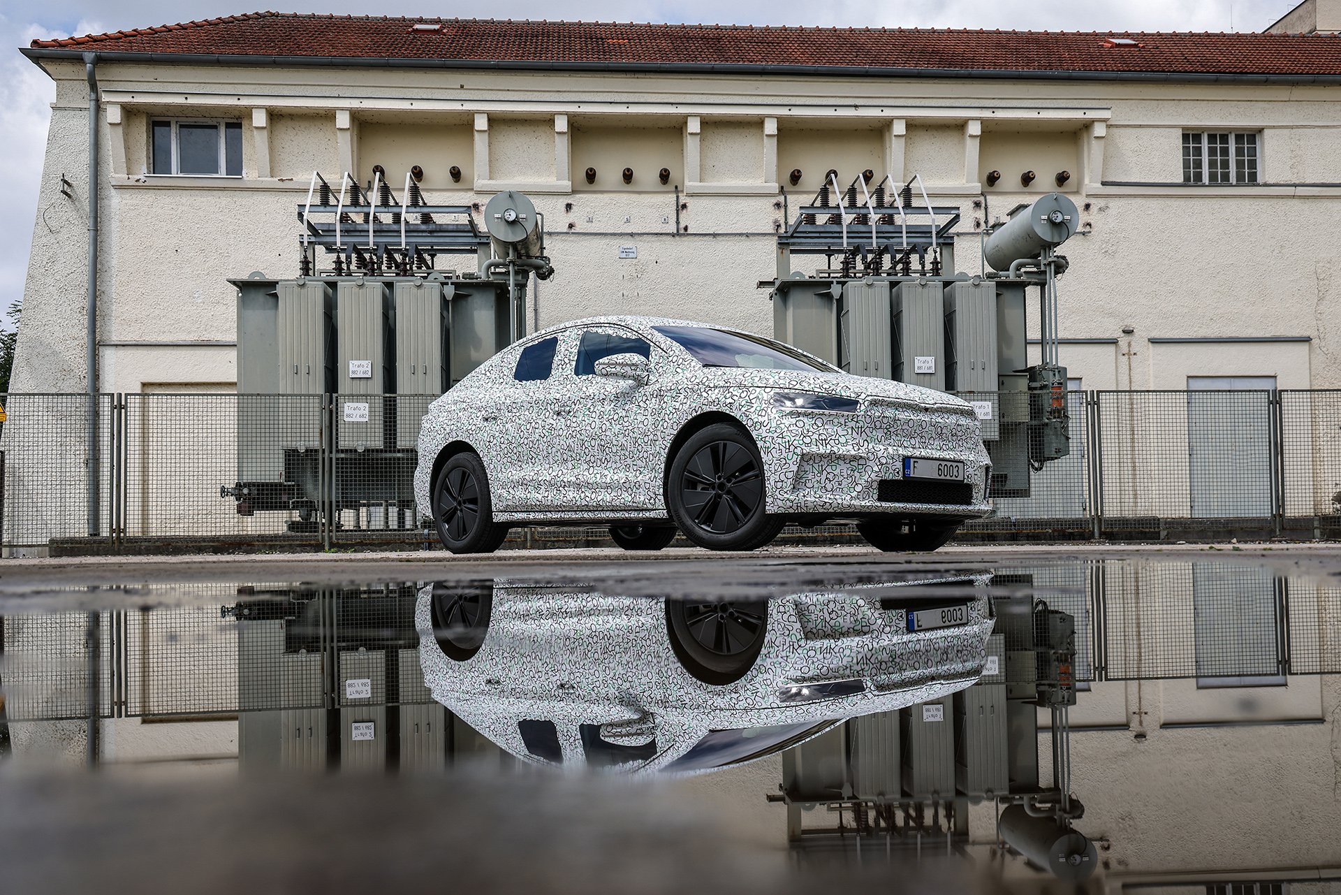 Το – ακόμη καμουφλαρισμένο – Skoda Enyaq Coupe iV διαφοροποιείται από το κομψό, κεκλιμένο πίσω μέρος ενώ διαθέτει πανοραμική γυάλινη οροφή, μέρος του βασικού εξοπλισμού, η οποία κλίνει απαλά προς τα πίσω από την κολόνα Β. Με μήκος 4.653 mm και ύψος 1.617 mm, το κουπέ είναι τέσσερα χιλιοστά μακρύτερο από το Enyaq iV και ένα χιλιοστό ψηλότερο. Ο συντελεστής οπισθέλκουσας (Cd) είναι μόλις 0,247, ακόμα χαμηλότερος από τον αντίστοιχο του Enyaq iV - που με τιμή 0,257 ήταν ήδη εξαιρετικός - καθιστώντας το Enyaq Coupe iV ενεργειακά πιο αποδοτικό.