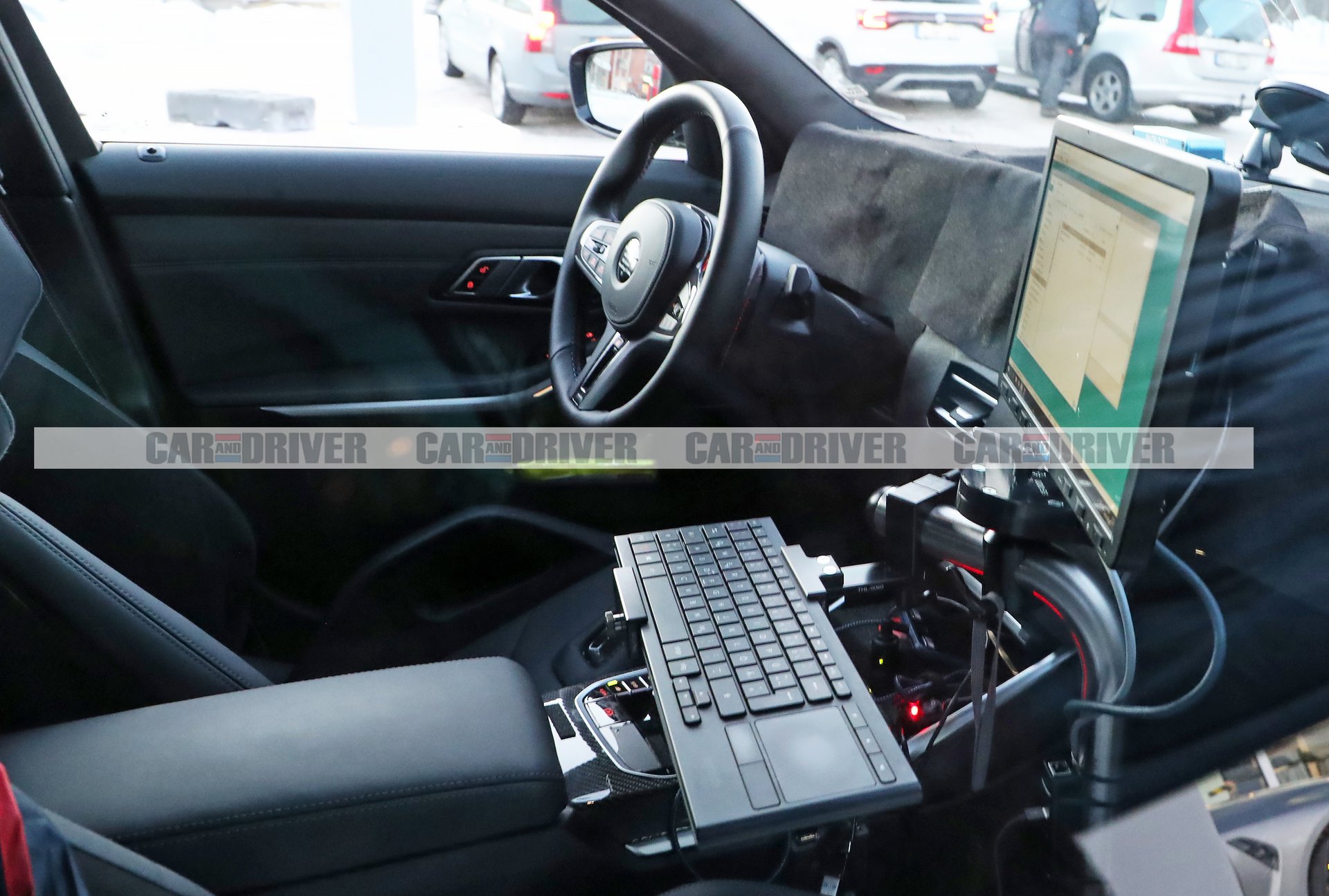 Η εικόνα από το εσωτερικό, ακόμα και με το ταμπλό καλυμμένο, αποκαλύπτει την υιοθέτηση του ίδιου layout για το ταμπλό και τις οθόνες με την πλήρως ηλεκτρική νέα i4 με την ύπαρξη του ενημερωμένου συστήματος ψυχαγωγίας iDrive8. Το μοτίβο της ενιαίας διάταξης των οθονών απέχει από το κλασικό στιλ στα εσωτερικά της BMW που συναντάμε και στις τρέχουσες γενιές των Σειρών 3 και 4. Οι τελευταίες λέγεται ότι θα λάβουν την ίδια διάταξη με αυτή της i4 στο επικείμενο facelift που αναμένεται.
