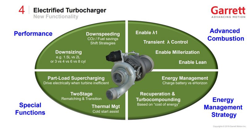 Κάτι το οποίο αξίζει να αναδείξουμε, στην προκειμένη περίπτωση, είναι το γεγονός ότι ναι μεν υπάρχουν σύνθετες συμβατικές διατάξεις turbo που εξασφαλίζουν ικανοποιητική ισχύ από χαμηλά, ένα e-turbo όμως φαίνεται να κάνει τη δουλειά καλύτερα και απλούστερα. Σύμφωνα με αποτελέσματα από δοκιμές της Garrett, ένας ηλεκτρικός υπερτροφοδότης, καλά ρυθμισμένος και πλήρως ελεγχόμενος ηλεκτρονικά, μπορεί να προσφέρει μία σειρά από πλεονεκτήματα σε έναν κινητήρα.