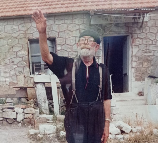 «Η χαρά μου απερίγραπτη γιατί μπόρεσα και πρόλαβα το ράλι που θα γινόταν σε λίγες μέρες. Οι δυσκολίες της ανάγλυφης πέτρας ξεπερνιούνται με την συντροφιά του του Θέμη που εκείνη την μέρα ξέχασε το κοπάδι και από τις 9 το πρωί ως το απόγευμα δεν έφυγε στιγμή από κοντά μου. Το μεσημέρι φτάνουν ενισχύσεις ο Γιάννης Διαμαντής με την σύζυγό του Γεωργία Γκαρίλα η κυρία Σοφία προσφέρει τσίπουρο και το έργο πάει προς το τέλος.