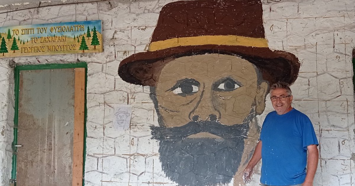 Περιδιαβαίνοντας την περιοχή κάνοντας την Ε.Δ. Σμόκοβο, συναντήσαμε τον εμπνευστή της προσωπογραφίας του «Ταρζάν» στην Λουτροπηγή, ήπιαμε καφέ μαζί του και μας ξεδίπλωσε το «σκηνικό». Πρόκειται για τον κ. Γιώργο Κατσίφα, ο οποίος μας διηγείται το πως δημιούργησε το πορτραίτο του «ερημίτη». Επίσης, για πρώτη φορά, μας αποκαλύπτει μία σπάνια φωτογραφία του Γιώργου -Ταρζάν- Μπούργου για να ξέρουμε πως πραγματικά ήταν!