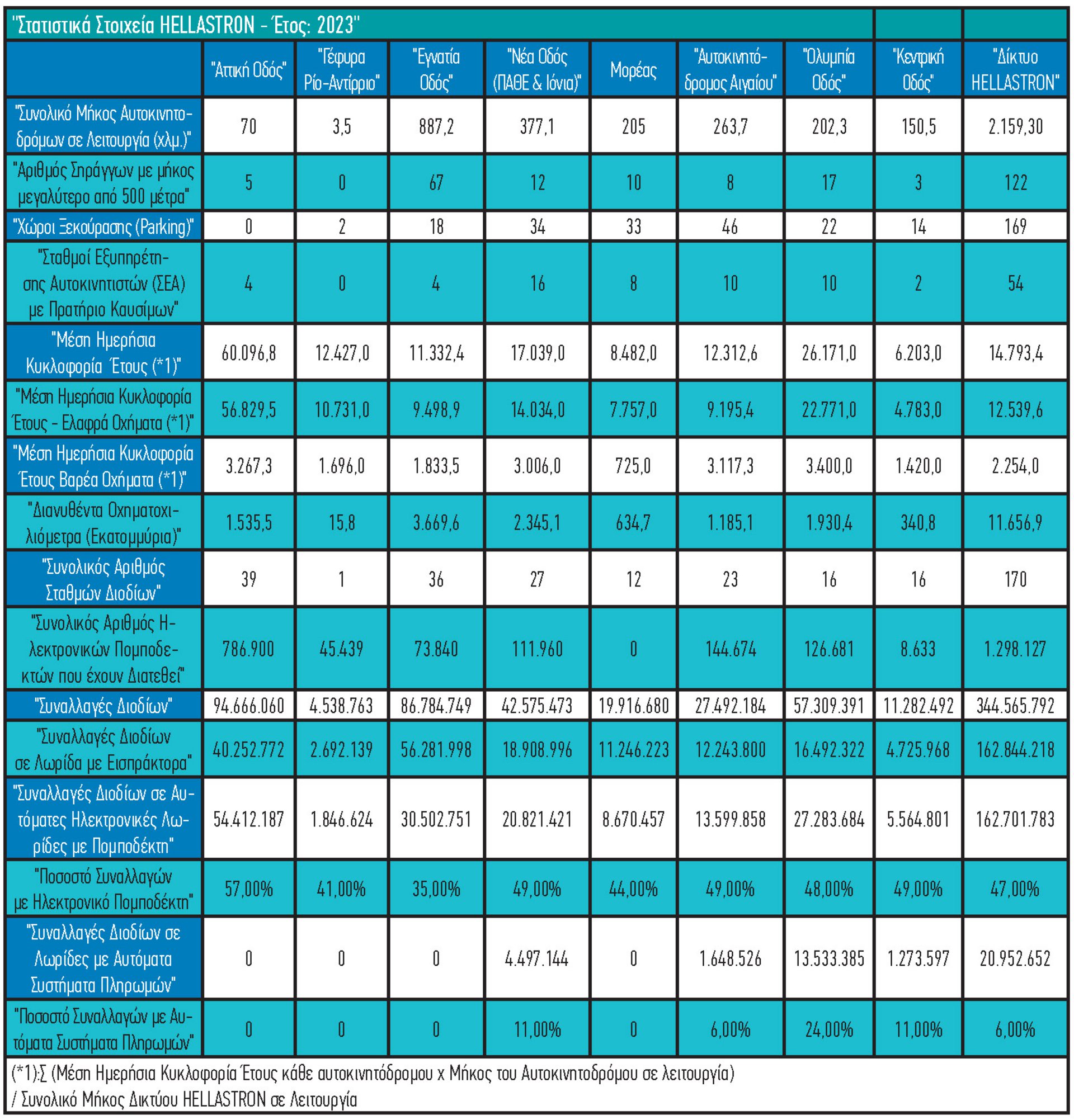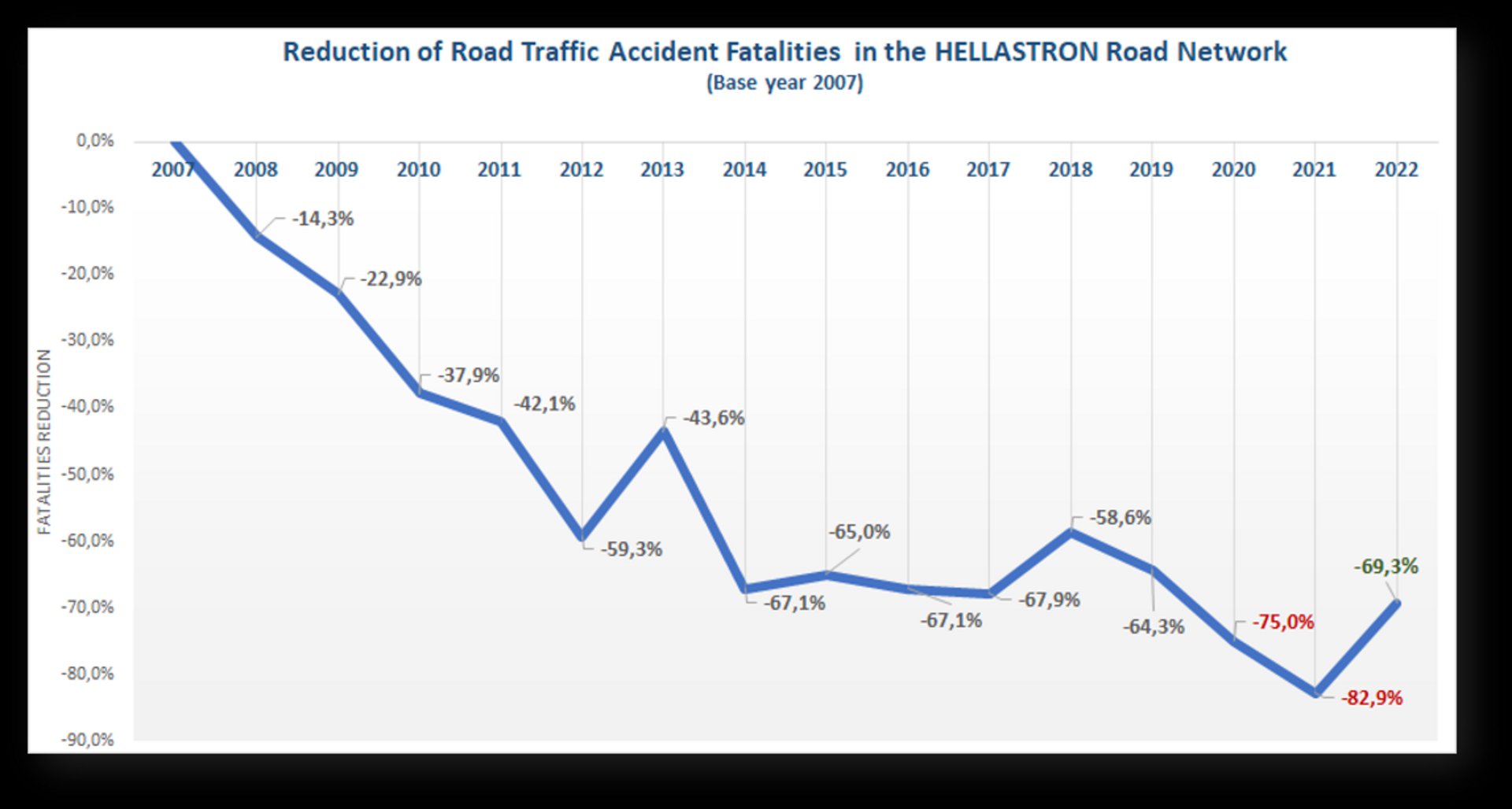 Σημειώνουμε στο σημείο αυτό ότι στα τέλη του 2014 ιδρύθηκε ο φορέας «ΕΛΛΗΝΙΚΕΣ ΥΠΟΔΟΜΕΣ και ΟΔΟΙ ΜΕ ΔΙΟΔΙΑ», με διακριτικό τίτλο «HELLASTRON» (HELLENIC ASSOCIATION of TOLL ROAD NETWORK), με τη συμμετοχή όλων των σύγχρονων αυτοκινητοδρόμων και υποδομών με διόδια που λειτουργούν στην Ελλάδα. Στο δίκτυο της Hellastron λειτουργούν σε 24ωρη βάση / 365 ημέρες τον χρόνο περισσότερα από 20 Κέντρα Ελέγχου Κυκλοφορίας, τα οποία διαχειρίζονται περισσότερα από 100.000 συμβάντα τον χρόνο, με περισσότερα από 150 οχήματα οδικής ασφάλειας να καλύπτουν με τις περιπολίες τους πάνω από 22 εκατομμύρια χιλιόμετρα τον χρόνο, κάνοντας μιάμιση φορά τον γύρο της Γης κάθε μέρα. Ο μέσος χρόνος ανταπόκρισης σε κλήσεις και συμβάντα κυμαίνεται από 6 λεπτά σε αστικά έως 20 λεπτά σε υπεραστικά οδικά τμήματα.