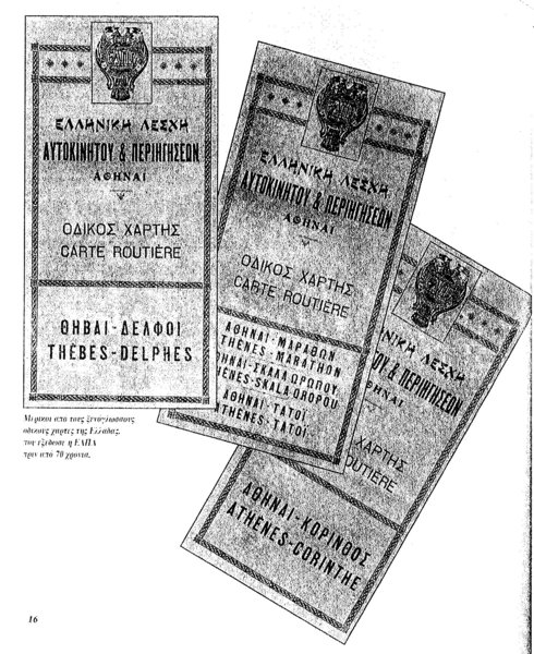 Περίπου σαράντα χρόνια ύστερα από τότε που ο Ποδηλατικός Σύλλογος Αθηνών, το 1898, είχε εγκαταστήσει συνεργεία σε πολλές αρτηρίες, ώστε να εξυπηρετούνται σε περίπτωση βλάβης τα μέλη του, τα οποία κινούνταν σκαρώνοντας αυτοσχέδιους χάρτες, όπως οι συνοδίτες τους στην Ιταλία -από το 1880 εκεί είχαν κάνει την εμφάνισή τους βέλη κατευθύνσεων-, αλλά και στη Γαλλία, η ΕΛΠΑ το 1933 προτείνει και επιβάλλει, αφού άλλοι, εκτός των στρατιωτικών, χάρτες δεν υφίστανται ή δεν είναι προσβάσιμοι, την άποψη της αστικής τάξης για τις προϋποθέσεις χρήσης της οδού, με την χάριν του τουρισμού αξιοποίηση ή και κατασκευή τους στο επίκεντρο των αναζητήσεων.