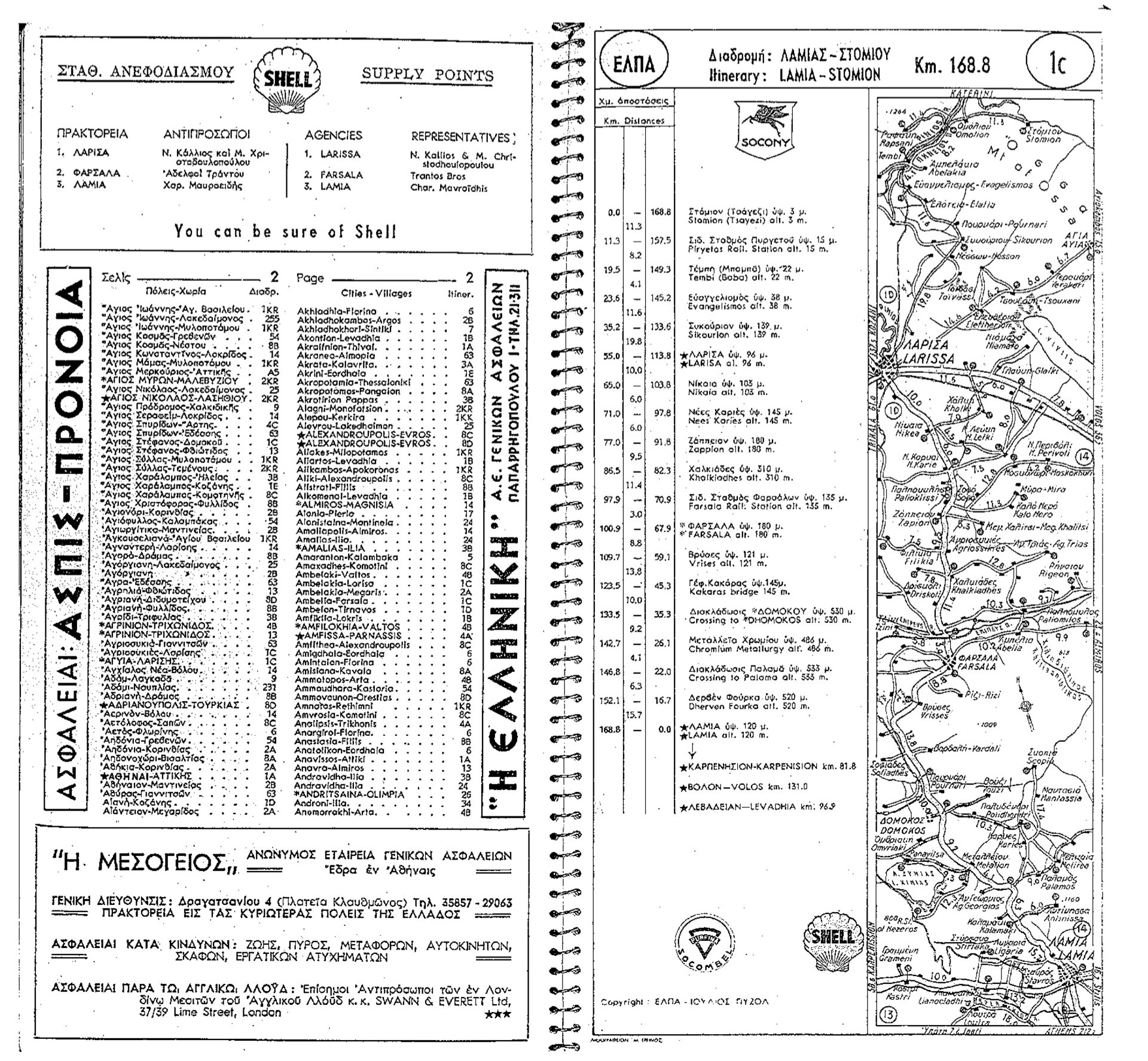 Περίπου πέντε χρόνια ύστερα, η χαρτογραφική παρέμβαση της ΕΛΠΑ επεκτείνεται αφού το 1938, οπότε έχει ήδη οργανωθεί το Α’ Βαλκανικό Ράλλυ με εκκίνηση από την Αθήνα, από όπου ήδη, εδώ και έξι χρόνια, εκκινούν αγωνιζόμενοι για το Ράλλυ Μόντε Κάρλο, χρησιμοποιώντας χάρτες του οργανωτή, ο τουρίστας έχει στη διάθεσή του τον γαλλιστί τυπωμένο χάρτη διαδρομών με αυτοκίνητο, με τη διαδρομή Αθήνα-Κοζάνη-Θεσσαλονίκη-Κούλα και το... αδελφάκι του Αθήνα-Κοζάνη- Κρυσταλλοπηγή. Οι δύο χάρτες, σε μια εποχή που έχει προταθεί η σύνδεση της Ελλάδας με το ευρωπαικό οδικό δίκτυο, αλλά δεν έχει επιτευχθεί, υπογράφονται από το Service Topographique au Ministere des Voies et Communications, την ίδια εποχή που εκδίδεται η Στρατιωτική Γεωγραφία του Αντωνίου Κολιοπάνου, και ενώ η Ελλάδα προετοιμάζεται προς πόλεμον. Αν δούμε ότι ο Κολιοπάνος καταγράφει την οδό Θεσσαλονίκη-Λαχανάς-Σέρρες ως αμαξιτή αρίστης ποιότητος, αλλά σκυρόστρωτος, και αν σκύψουμε στο χάρτη, σε άλλη μια κινητικότητος σημαντική κίνηση, και διαπιστώσουμε την ίδια διά γραμμών επισήμανση, θα δούμε τη σχέση των δύο εγχειρημάτων του Κολιοιπάνου και των χαρτογράφων που συνεργάστηκαν με την ΕΛΠΑ. Ο εθνικός χώρος πια διαστίζεται και νοηματοδοτείται, ανασυστήνεται και ξαναγράφεται. Εδώ πια σημειώνονται οι σταθμοί καυσίμων της Shell σε όλη την Ελλάδα, στα Σέρβια, λόγου χάριν, στην Κοζάνη, στο Σιδηρόκαστρο, στο Ντεμίρ Χισσάρ, σημειώνεται το σιδηροδρομικό και το οδικό δίκτυο, αλλά και ορισμένα «μηχανουργεία».