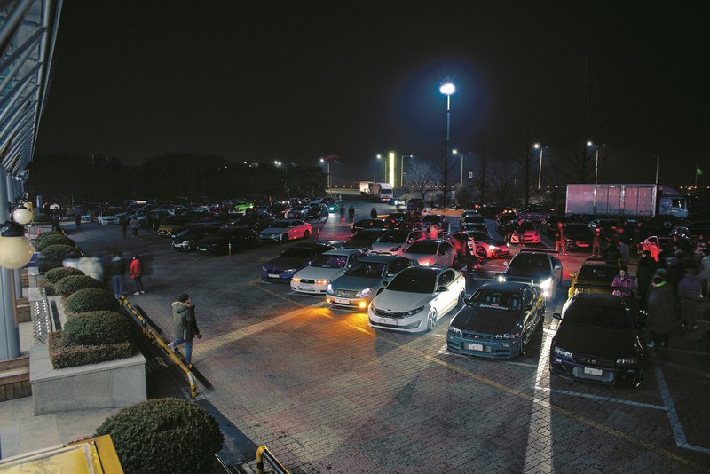 Όχι όμως μέχρι να σχηματιστεί ολόκληρη η εικόνα. Υπάρχει ένας απλός λόγος γιατί οι αστυνομικοί είχαν κάνει τόσο νωρίς την εμφάνισή τους Πολύ πριν η συγκέντρωση οργανωθεί επίσημα, πάνω από εκατό βελτιωμένα αυτοκίνητα είχαν ήδη καταλάβει τον χώρο. Η Νότια Κορέα είναι η χώρα των ασημί-γκρι KIA και Hyundai, με μερικά Genesis και κάποιες BMW να αποτελούν τη βιτρίνα. Ωστόσο, τα μεσάνυχτα μιας Παρασκευής του Ιανουαρίου, μία μικρή όαση είχε ήδη σχηματιστεί.