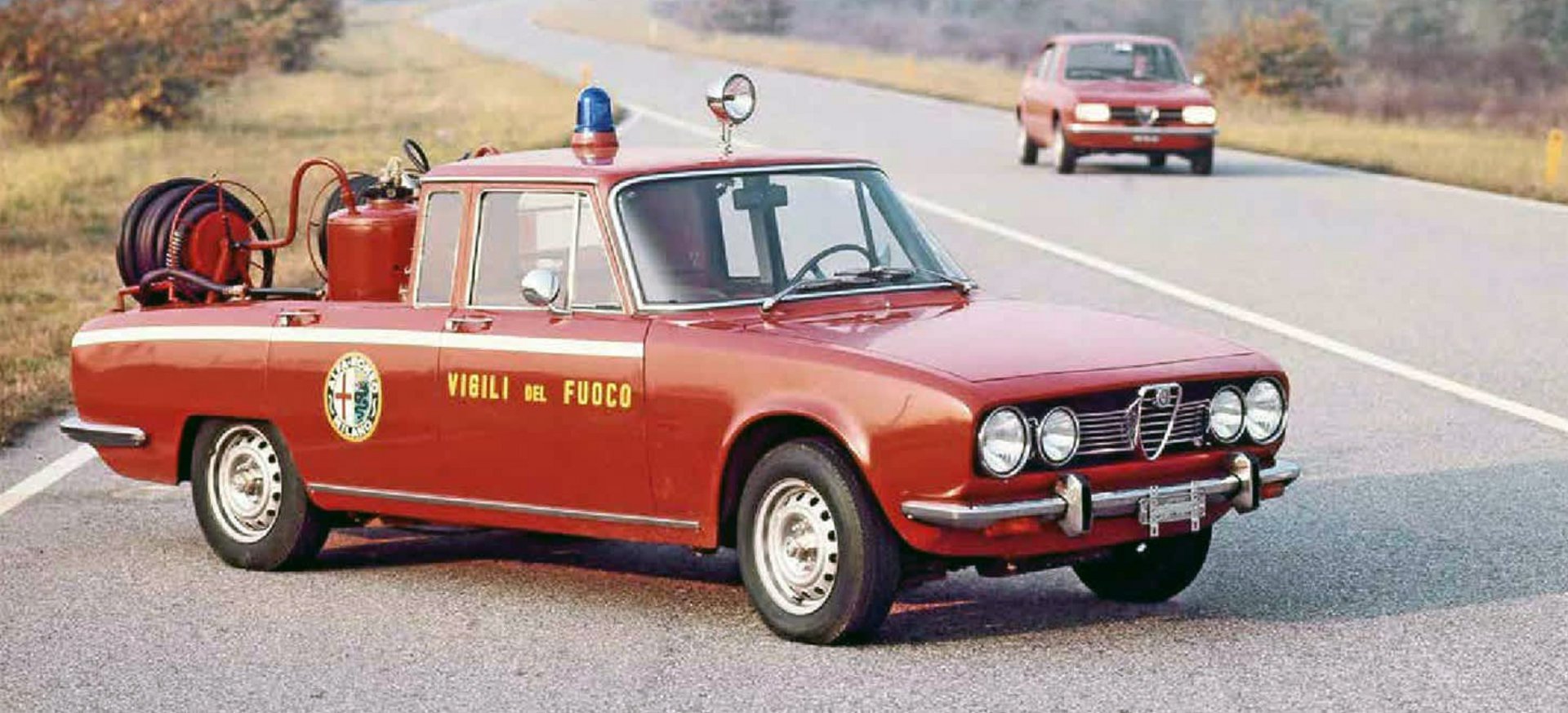Το πρώτο «Vigili del Fuoco» (σ.σ. Πυροσβεστικό) ήταν το όμορφο, μικρό, sedan 1750 Berlina. Στη συνέχεια ακολούθησε η ανανεωμένη Alfetta Berlina, πριν η μιλανέζικη, τότε, φίρμα περάσει στην ναυαρχίδα της εποχής: Την πολυτελή Alfa Romeo Alfa 6. Η επόμενη επιλογή ήταν πιο «κανονική», με την Giulietta και οι τίτλοι τέλους έπεσαν με τον πλέον εντυπωσιακό τρόπο, καθώς η αυτοκινητοβιομηχανία επέλεξε να στραφεί στο τμήμα υψηλών επιδόσεών της.