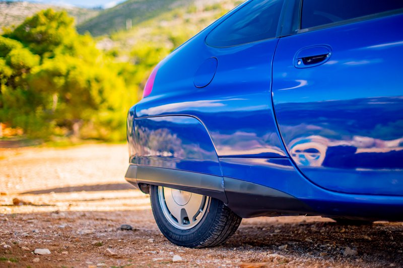 Το μπλε, αεροδυναμικό αυτοκίνητο εμφανίστηκε μπροστά μας απρόσμενα. Μοιάζοντας σαν να διέσπασε τον χωρόχρονο και να επιβεβαίωσε τη θεωρία ότι είναι εφικτό το ταξίδι σε αυτόν, πέρασε επιδεικτικά από μπροστά μας. Σχεδόν όλοι οι παρευρισκόμενοι σταμάτησαν ό,τι έκαναν και βάλθηκαν να το κοιτούν.