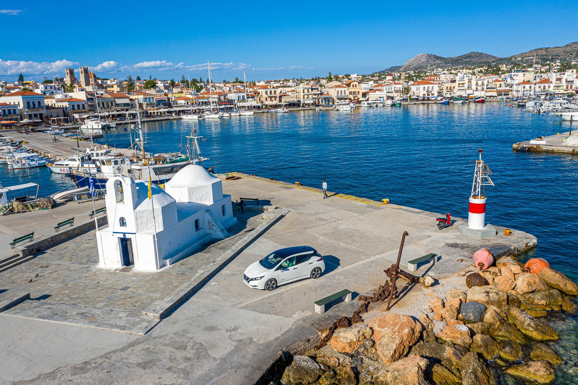 Και ξαφνικά, από τη μια ημέρα στην άλλη, όπως συνηθίζεται παρ’ ημίν, η ηλεκτροκίνηση έγινε το νούμερο ένα trend στα ενδιαφέροντα του Έλληνα. Από τον λοστρόμο στο γκαράζ του καραβιού μέχρι τον κύριο που πουλά τα πολυφωτογραφημένα φρούτα στο λιμάνι του νησιού, το Nissan Leaf αποτέλεσε το τιμώμενο αυτοκίνητο εκείνης της Πέμπτης, οπότε βρεθήκαμε στην Αίγινα («τέτοιο έχει και ο δήμαρχος», μάθαμε, άλλωστε).