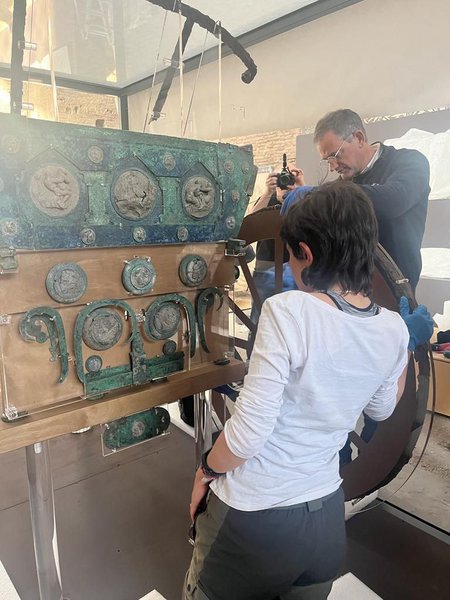 Και μάλιστα όχι ένα οποιοδήποτε άρμα. Αλλά ένα δημιούργημα στολισμένο με γλυπτά και ανάγλυφες παραστάσεις, που κατά τους Ιταλούς αρχαιολόγους, προορίζονταν για κοινωνικές εκδηλώσεις πολυτελούς επιπέδου, όπως γάμοι, παρελάσεις, τελετές, κ.ά.