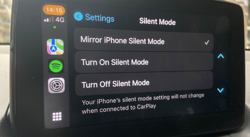 Αν η συσκευή του συνδεδεμένου iPhone δεν είναι στην αθόρυβη λειτουργία, όμως ο οδηγός δεν επιθυμεί να ακούγεται μέσα στο αυτοκίνητο όταν κάποιος τον καλεί, υπάρχει πλέον η επιλογή του «Silent Mode», που όμως δε θα επηρεάσει το κουδούνισμα της κινητής συσκευής. Η ενεργοποίηση αυτής της λειτουργίας γίνεται μέσω των Ρυθμίσεων του CarPlay με την επιλογή της καρτέλας «Silent Mode».