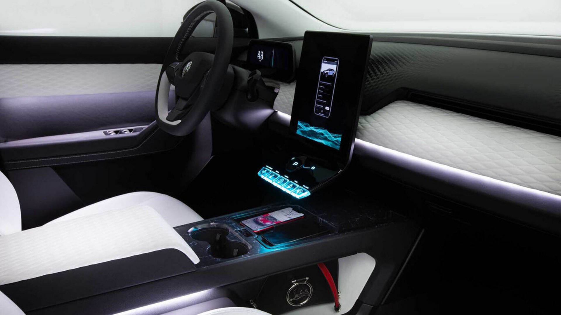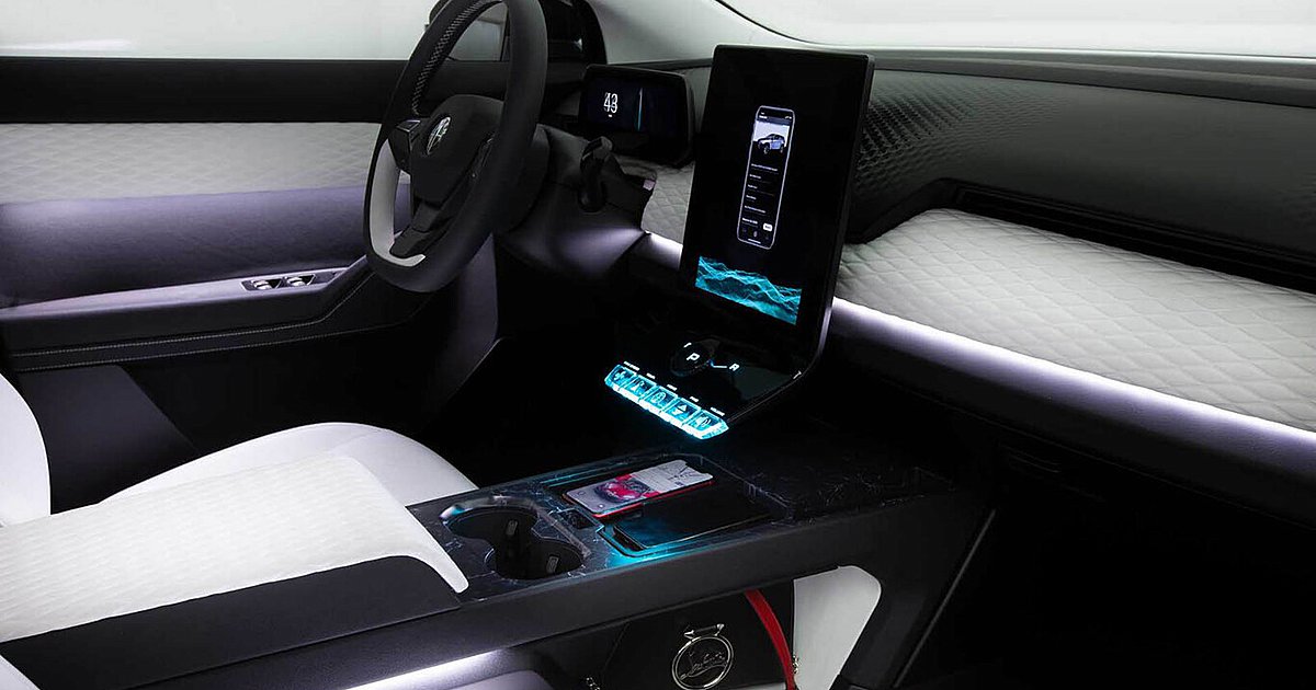 Πρόκειται για ένα πολύ φουτουριστικό μοντέλο, κάτι που πιστοποιεί και το εσωτερικό του, στο οποίο πέρα από τα eco-friendly ανακυκλώσιμα υλικά, δεσπόζει η μεγάλη οθόνη αφής με διάμετρο 17,1 ιντσών που έχει τη δυνατότητα να περιστραφεί όταν το αυτοκίνητο δεν βρίσκεται εν κινήσει.