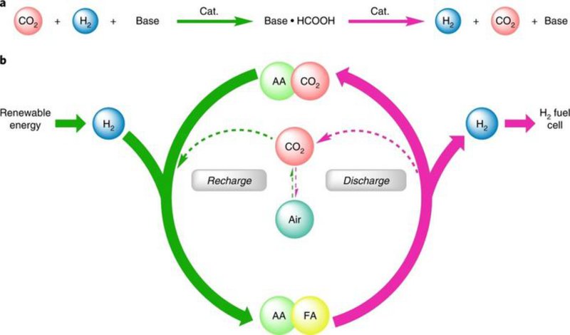 Ο Matthias Beller, διοικητής του Ινστιτούτου Κατάλυσης, εξηγεί ότι οι δεξαμενές των μπαταριών γεμίζουν πρώτα με διοξείδιο του άνθρακα, πριν γίνει η εισαγωγή του υδρογόνου, ο οποίος αποδεσμεύεται ανάλογα με τις ανάγκες της κυψέλης καυσίμου, χάρη σε μία αντίδραση μεταξύ αμινοξέων και μαγγανίου, που δρα ως καταλύτης.