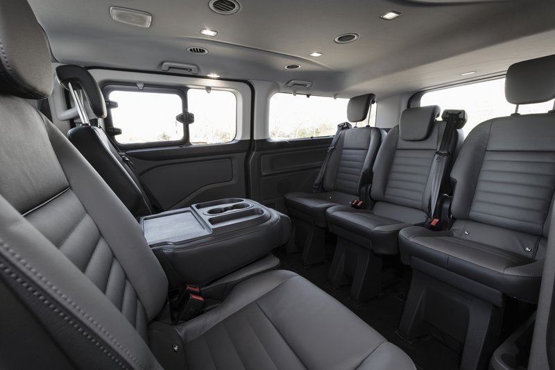 Διαθέσιμο σε διάταξη οκτώ ή εννέα θέσεων, το Tourneo Custom παραμένει το μοναδικό όχημα στην κατηγορία του που προσφέρει έξι ατομικά καθίσματα και δυνατότητα συνεδριακής διάταξης για τις δύο πίσω σειρές. Διατίθεται σε εκδόσεις με κοντό ή μακρύ μεταξόνιο, με τη μακρύτερη να παρέχει πρόσθετο χώρο αποσκευών πίσω από την τρίτη σειρά καθισμάτων.