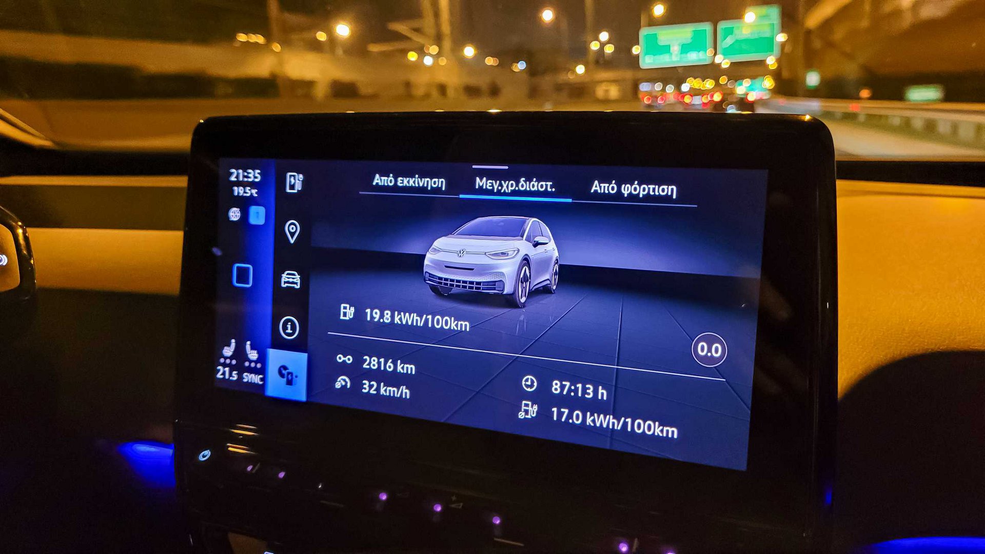 Σημειώστε ότι τηρήσαμε ευλαβικά τα όρια ταχύτητας στην Εθνική οδό και θα μπορούσαμε ακόμα και να έχουμε επιστρέψει στην Αθήνα χωρίς ανεφοδιασμό, αλλά προτιμήσαμε την ασφάλεια της φόρτισης… Κατά τ’ άλλα, στις στροφές του Ελικώνα μΆς δόθηκε η δυνατότητα να απολαύσουμε την οδήγηση αξιοποιώντας το μέγα πλεονέκτημα της άμεσης διαθεσιμότητας της ροπής του ηλεκτροκινητήρα των 204 PS. Τέλος, πρέπει να επισημάνουμε ότι μεγάλο προσόν του ID.3 αποτελεί η εξαιρετική εκμετάλλευση των διαθέσιμων χώρων, κάτι που εισπράττουν κάθε στιγμή οι επιβαίνοντες σε αυτό.