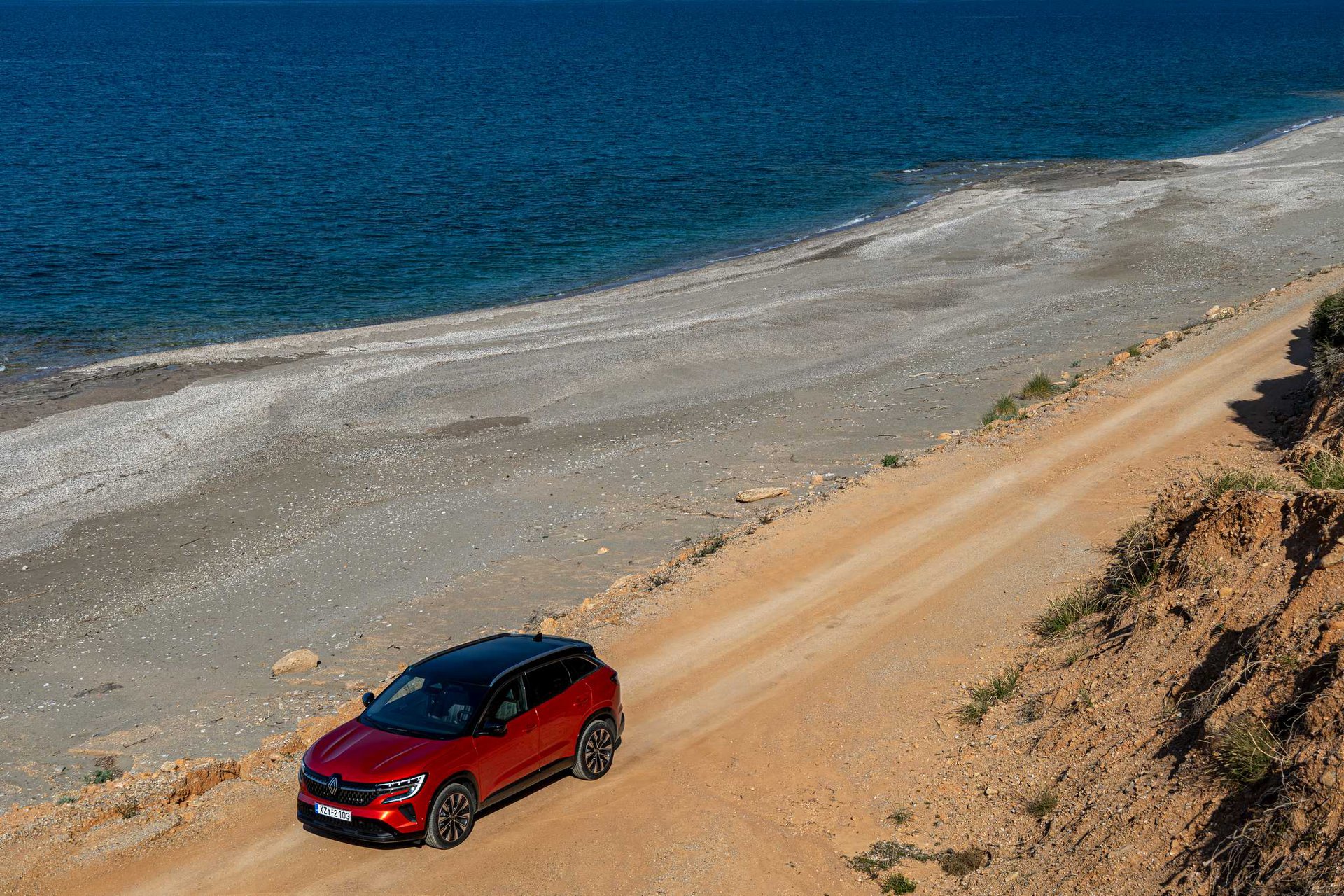 Απόλαυση, λοιπόν, το ταξίδι, υπό τη σκέπη, μάλιστα, των απαραιτήτων ηλεκτρονικών βοηθημάτων, αλλά και ξεκούραστη η οδήγηση, αφού το καινούργιο Renault είναι αυτόματο, εφοδιασμένο με το πλήρως υβριδικό (αυτοφορτιζόμενο) σύστημα κίνησης, το οποίο συμπιέζει με τρόπο ευχάριστο για τον οδηγό την κατανάλωση (6,6 έως 6,8 L / 100 km στο trip computer), μετατρέποντας το 80% των διαδρομών σε ηλεκτροκίνητες. Πρόκειται για επίδοση εξαιρετική για ένα αυτοκίνητο 200 PS που προσπερνάει σβέλτα και δεν τσιγκουνεύεται τις επιδόσεις του, με το μέγεθος και το βάρος του Austral. Η ευστάθεια στην ευθεία εμπνέει απόλυτη εμπιστοσύνη, ενώ στις περισσότερες ή λιγότερο γρήγορες στροφές της περιοχής της Κύμης δεν παύαμε να απολαμβάνουμε τον τρόπο που δουλεύει η ενεργητική τετραδιεύθυνση προσφέροντας κράτημα και ευελιξία υψηλού επιπέδου.