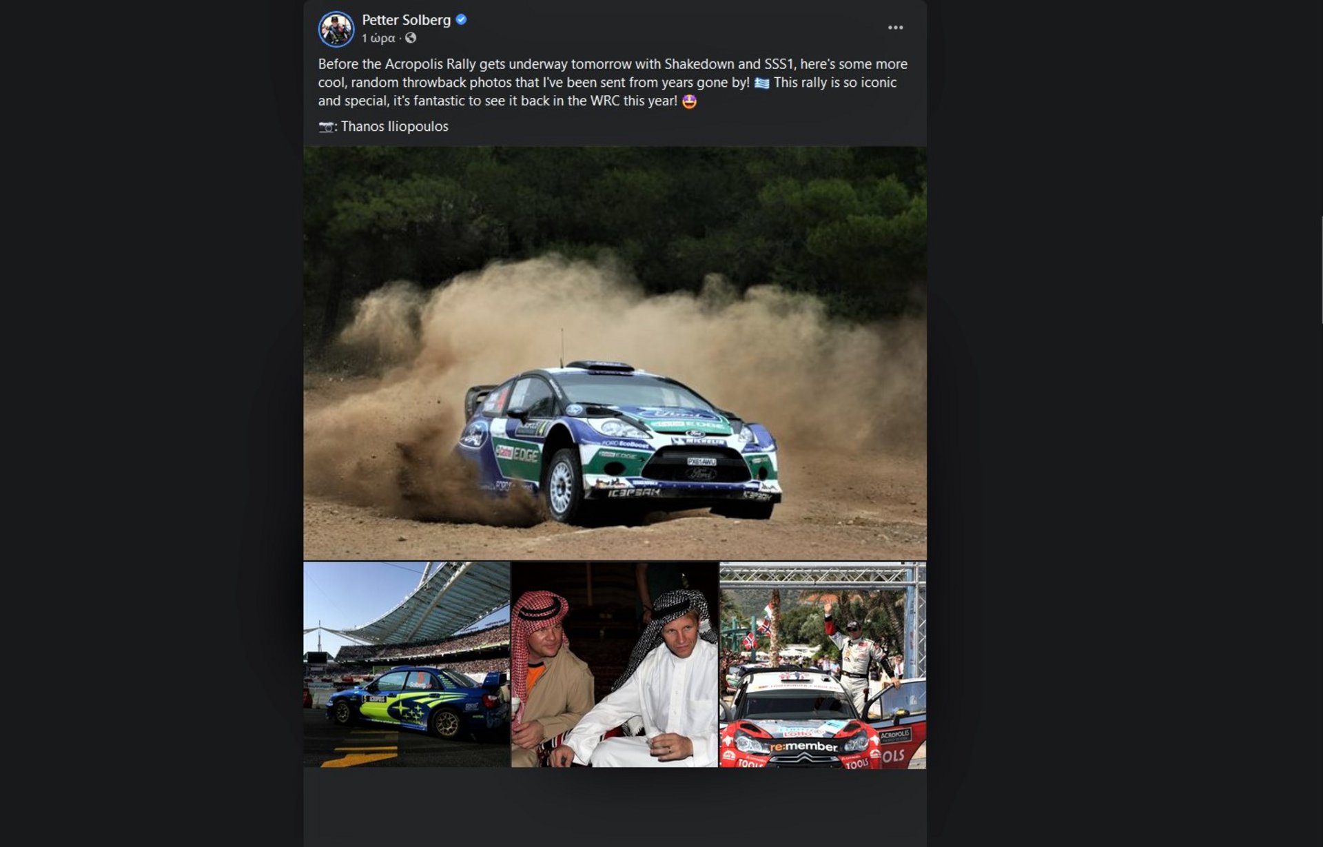 Επί τη ευκαιρία φρόντισε λοιπόν να μοιραστεί μερικές τυχαίες στιγμές από το πέρασμά του από την Ελλάδα μέσω των μέσων κοινωνικής δικτύωσης αλλά από την πολλή φόρα, υπέπεσε σε ένα ιλαρό λάθος. Ποιο είναι αυτό; Το τυχαίο ανέβασμα φωτογραφιών από τη χώρα μας (με credits στον καλό συνάδελφο Θάνο Ηλιόπουλο) είχε και μια φωτογραφία από το Ράλι Ιορδανίας του 2008 όπου με την ανάλογη περιβολή πίνει τσάι με τον αδελφό του Henning. Το λάθος έγινε αμέσως αντιληπτό από Έλληνες φανς του Νορβηγού οδηγού και βέβαια δεν έλειψε η απορία στα σχόλιά τους.