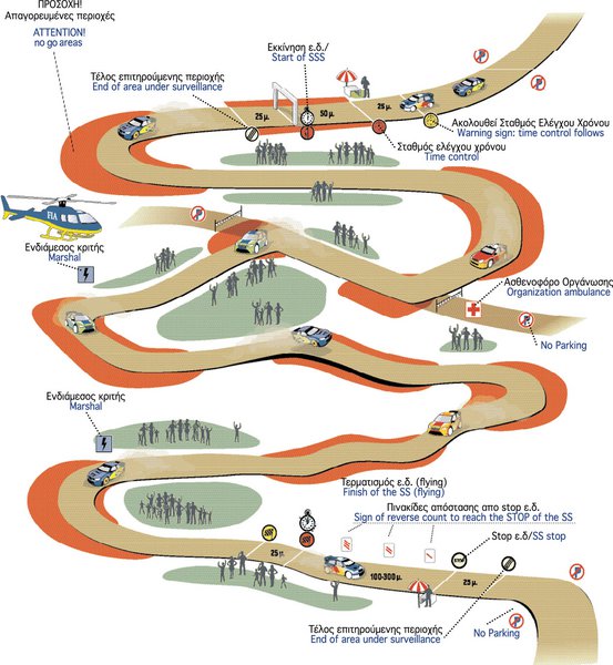 Οι ειδικές διαδρομές θα κλείνουν 3 ώρες πριν από το πρώτο αγωνιστικό αυτοκίνητο. Φροντίστε να είστε εγκαίρως στην ειδική διαδρομή, και παρκάρετε
