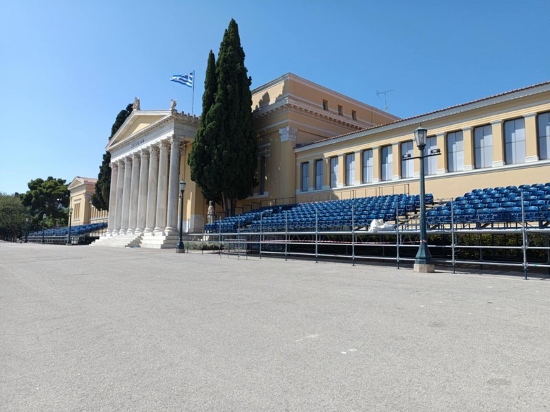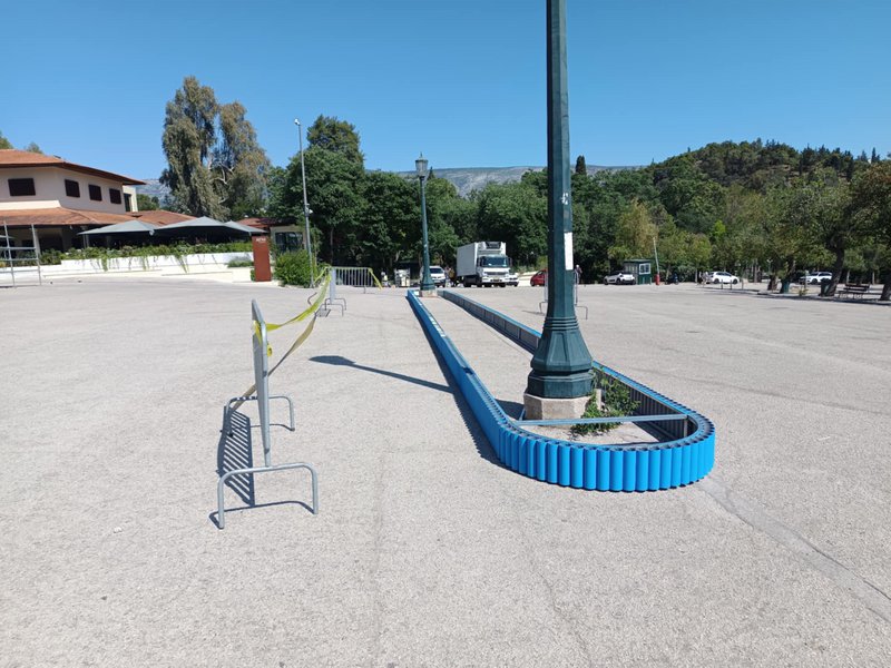 Παράλληλα, το απόγευμα της Κυριακής ολοκληρώθηκε και η τοποθέτηση των μεταλλικών ορίων που καθορίζουν τη διαδρομή ανάμεσα στους στύλους φωτισμού του περιβάλλοντος χώρου του Ζαππείου.