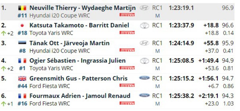 Αυτό ευνόησε αρκετά τον Takamoto Katsuta, που προβιβάστηκε στην 2η θέση γενικής κατάταξης, μπροστά από τον Εσθονό της Hyundai.