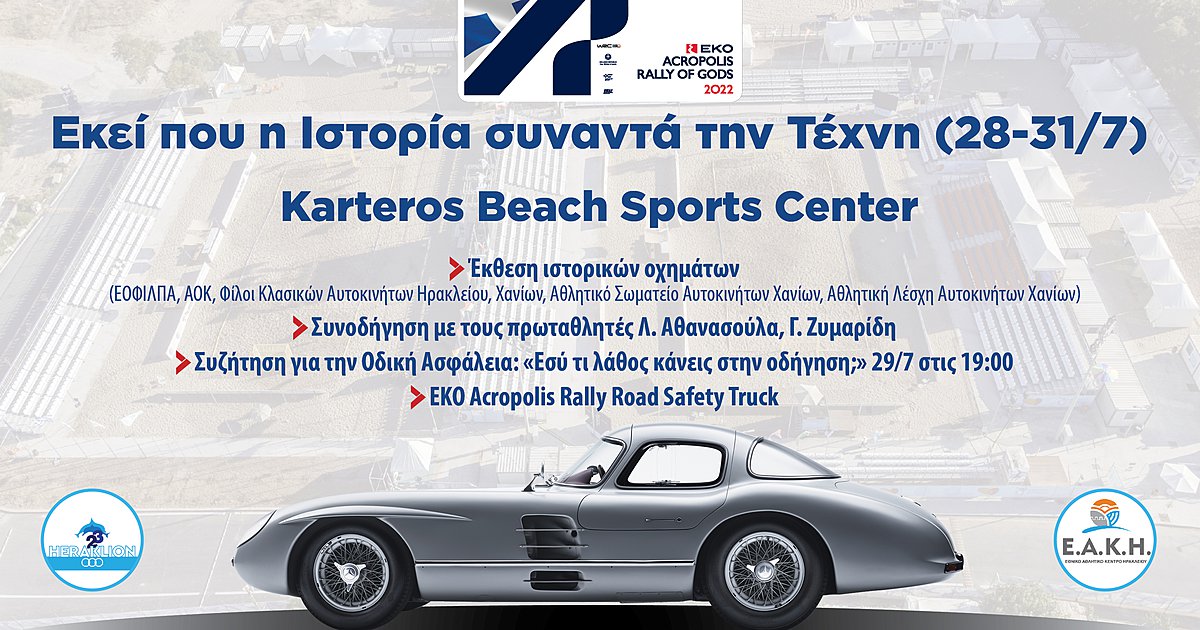 To ΕΚΟ Ράλλυ Ακρόπολις «ξεκινά» και φέτος από την Κρήτη και ειδικότερα από το Ηράκλειο. Στις Εθνικές Παράκτιες Αθλητικές Εγκαταστάσεις στον Καρτερό μπαίνει και ο μηχανοκίνητος αθλητισμός, έπειτα από τα αθλήματα της άμμου (beach handball, beach volley, footvolley, beach soccer), που με επιτυχία διεξήχθησαν εκεί τις τελευταίες εβδομάδες.