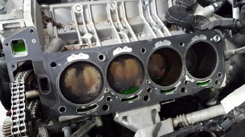 Ιδιαίτερα εάν ο λευκός καπνός παραμένει πυκνός, δεν διαλύεται και συνοδεύεται από μια γλυκιά μυρωδιά (σαν καραμέλα), τότε πιθανότατα το ψυκτικό υγρό έχει εισχωρήσει στον θάλαμο καύσης και καίγεται μαζί με το καύσιμο. Αυτό μπορεί να συμβεί σε όλους τους κινητήρες εσωτερικής καύσης ανεξάρτητα εάν είναι βενζίνης ή πετρελαίου και οφείλεται συνήθως σε καμένη φλάντζα κυλινδροκεφαλής ή στο ακόμα χειρότερο σενάριο, ράγισματος στην κυλινδροκεφαλή ή στο μπλοκ του κινητήρα.
