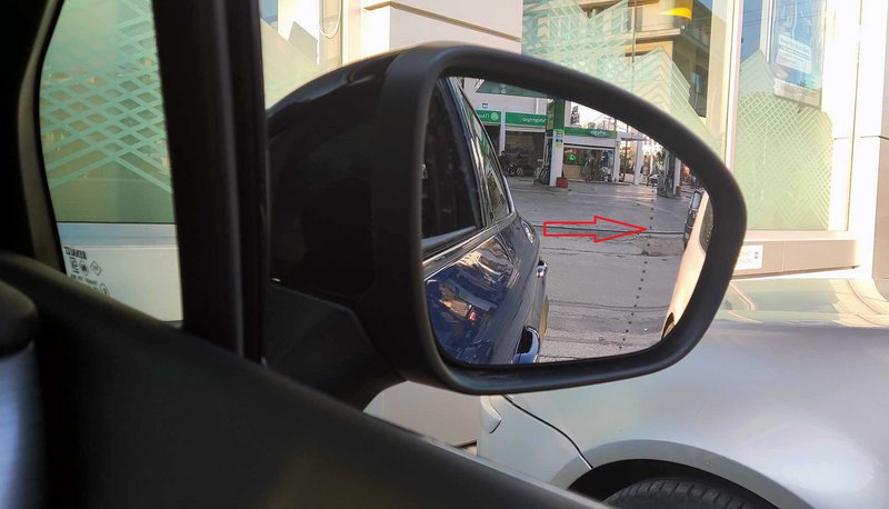 Ωστόσο, θα έχετε προσέξει, τουλάχιστον όσοι δεν οδηγείτε πολύ παλιά αυτοκίνητα, ότι πολύ συχνά ο εξωτερικός καθρέφτης τόσο από την πλευρά του οδηγού, όσο και, ενίοτε, από αυτή του συνοδηγού διαθέτει μία λεπτή, κάθετη διαχωριστική γραμμή, αποτελούμενη από μικρές μαύρες κουκκίδες ή αντίστοιχα μικρές μαύρες παύλες.
